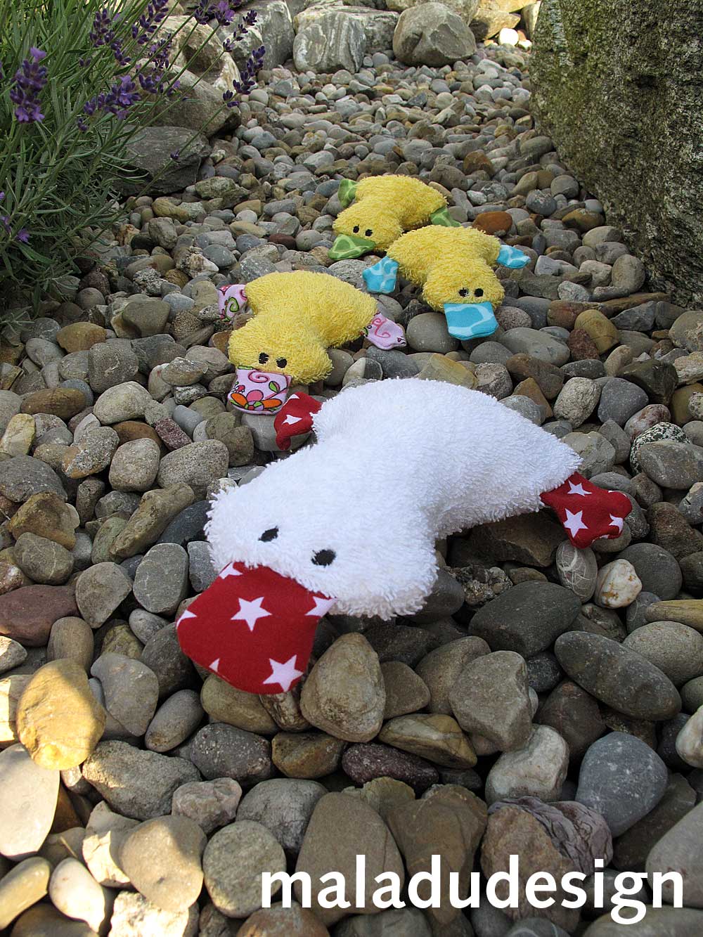Eine Bloggerfreundin aus Deutschland wünschte sich von mir drei kleine Babyentchen für die KiTa. Die sind nun geboren. Und weil drei kleine Entenkinder unmöglich alleine so weit reisen können,
