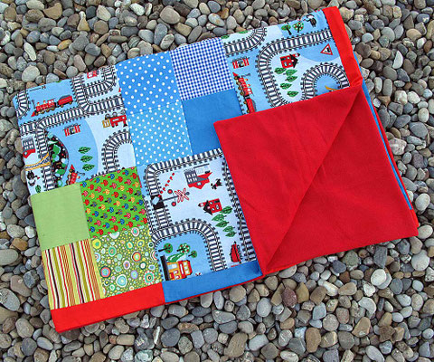 Eine Decke erfüllt gerade bei Kindern viele Funktionen. Sie kann als Kuscheldecke genauso verwendet werden wie als Spielelement. Patchworkdecken nähe ich vor allem auf Bestellung, da die Wünsche sehr individuell und zum Teil umfangreich sind. Gerne nähe ich für Sie oder Ihr Kind eine ganz persönliche Kuscheldecke oder fürs Baby eine Krabbeldecke.