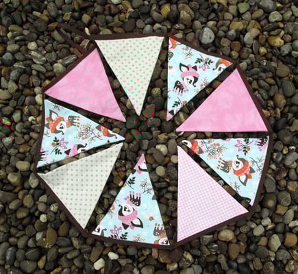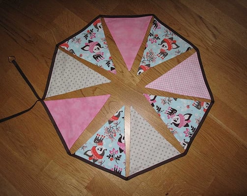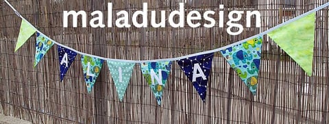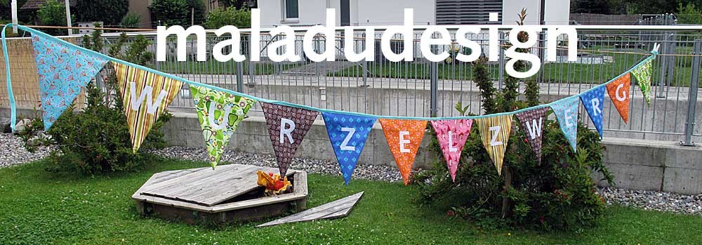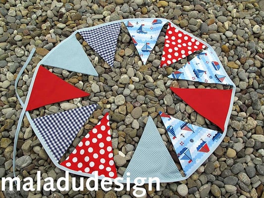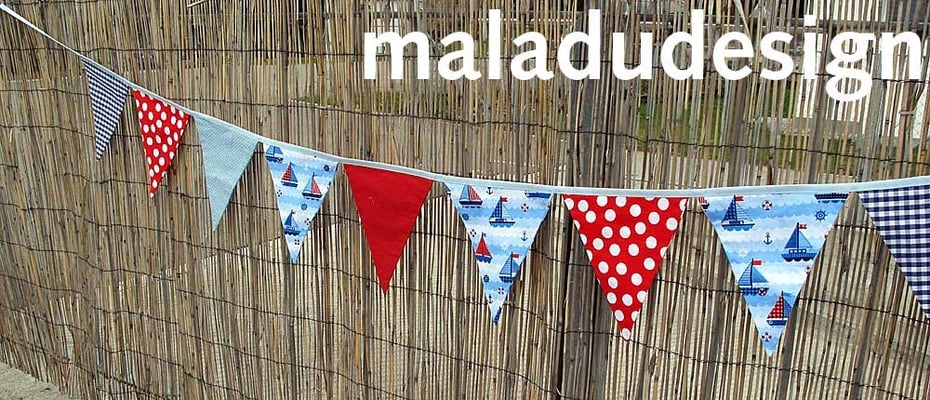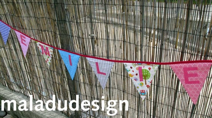 Die Wimpelanzahl und die Stoffe können frei ausgewählt werden. Bei den Wimpeln von maladudesign gibt es keine Rückseite. Die Wimpelkette kann somit auch frei im Raum aufgehängt werden. Jede Kette