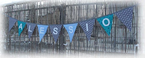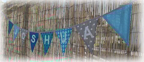 Auf Wunsche nähe ich gerne auch eine Wimpelkette mit applizierten Buchstaben drauf!
